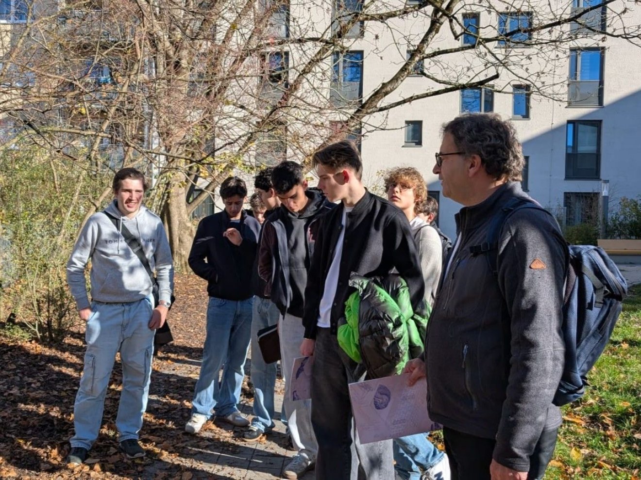 Die Schüler stellten fachliche Rückfragen und zeigten großes Interesse an den ökologischen und städtebaulichen Zusammenhängen. Der Besuch war somit ein gelungener Auftakt für das W-Seminar, das sich nun in den kommenden Monaten weiter mit dem Thema beschäftigen wird. Jeder Schüler wird sich dabei sein eigenes kleines Mini-Projekt im Sinne des Animal Aided Design überlegen – vielleicht ein Insektenhotel, eine Vogeltränke oder ein bepflanzter Balkon für Wildbienen.