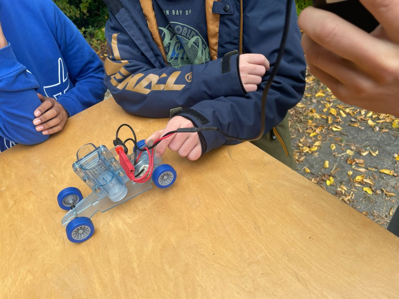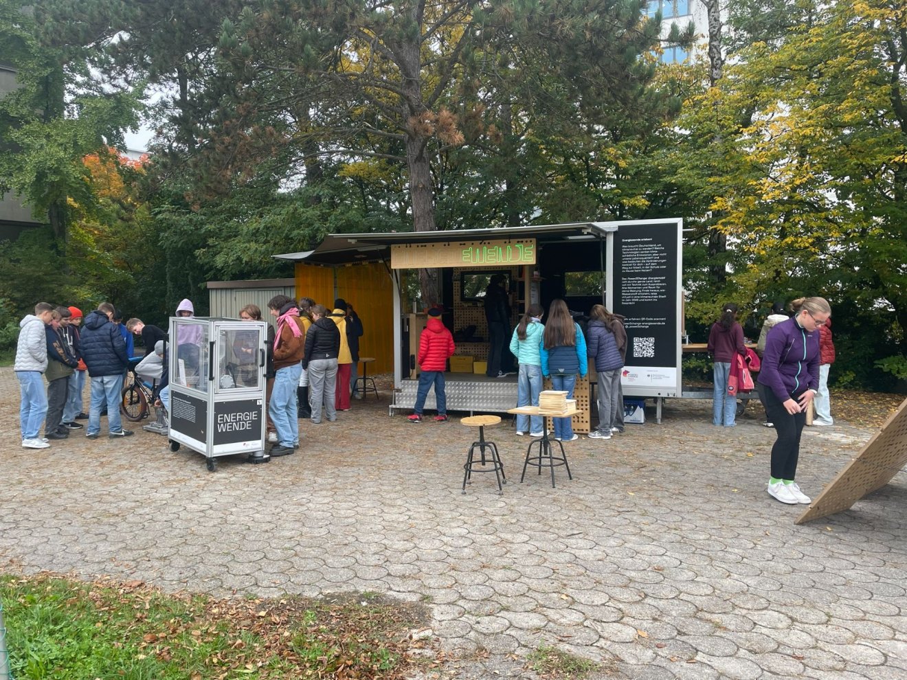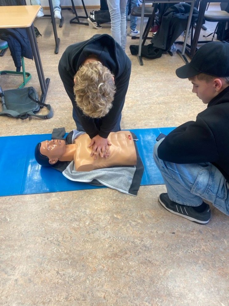 Die 8. Klassen lernten beim Reanimationstraining wichtige Schritte bei der Ersten Hilfe; ein Teil konnte sich außerdem beim Besuch des Energiemobils über alternative Antriebsmöglichkeiten für Fahrzeuge informieren. Dabei durften sie auch selbst in die Pedale eines Fahrrads treten, um mit der kinetischen Energie Wasser in Wasserstoff und Sauerstoff zu spalten; bei einer späteren Fusionierung der beiden Gase wird wieder Energie freigesetzt, mit dem dann ein kleines Auto angetrieben wurde.