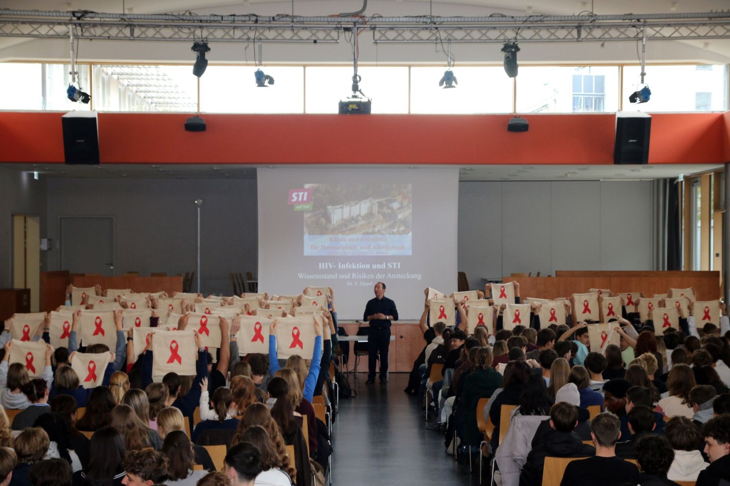 In den 9.-11. Klassen standen die Themen Mental Health und Suchtprävention im Fokus. Die "Sauba bleim"-Workshops für die 9. Klassen und der Vortrag von Frau Dr. Haasemann über Lifestyle-Pillen für die 11. Klassen klärten über die Gefahren von Drogen auf; bei Einheiten zur mentalen Gesundheit konnten sich die 9. und 10. Klassen bewusst machen, was ihnen gut tut und wie Tiefs überwunden werden können. Zudem wurden die 10. Klassen in einem Vortrag von Dr. Stefan Zippel von der LMU München über die Gefahren von HIV und sexuell übertragbaren Krankheiten aufgeklärt. Hier waren auch Schülerinnen und Schüler des Dom-Gymnasiums und der Realschule Gute Änger bei uns zu Gast.