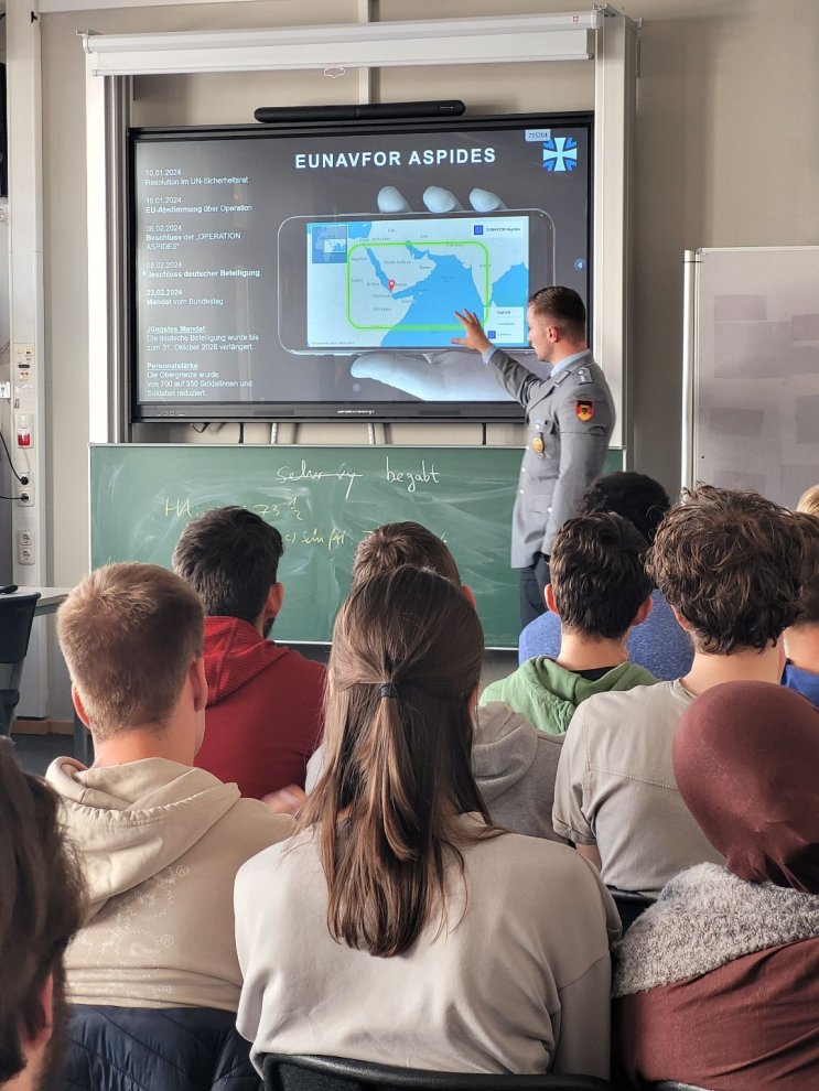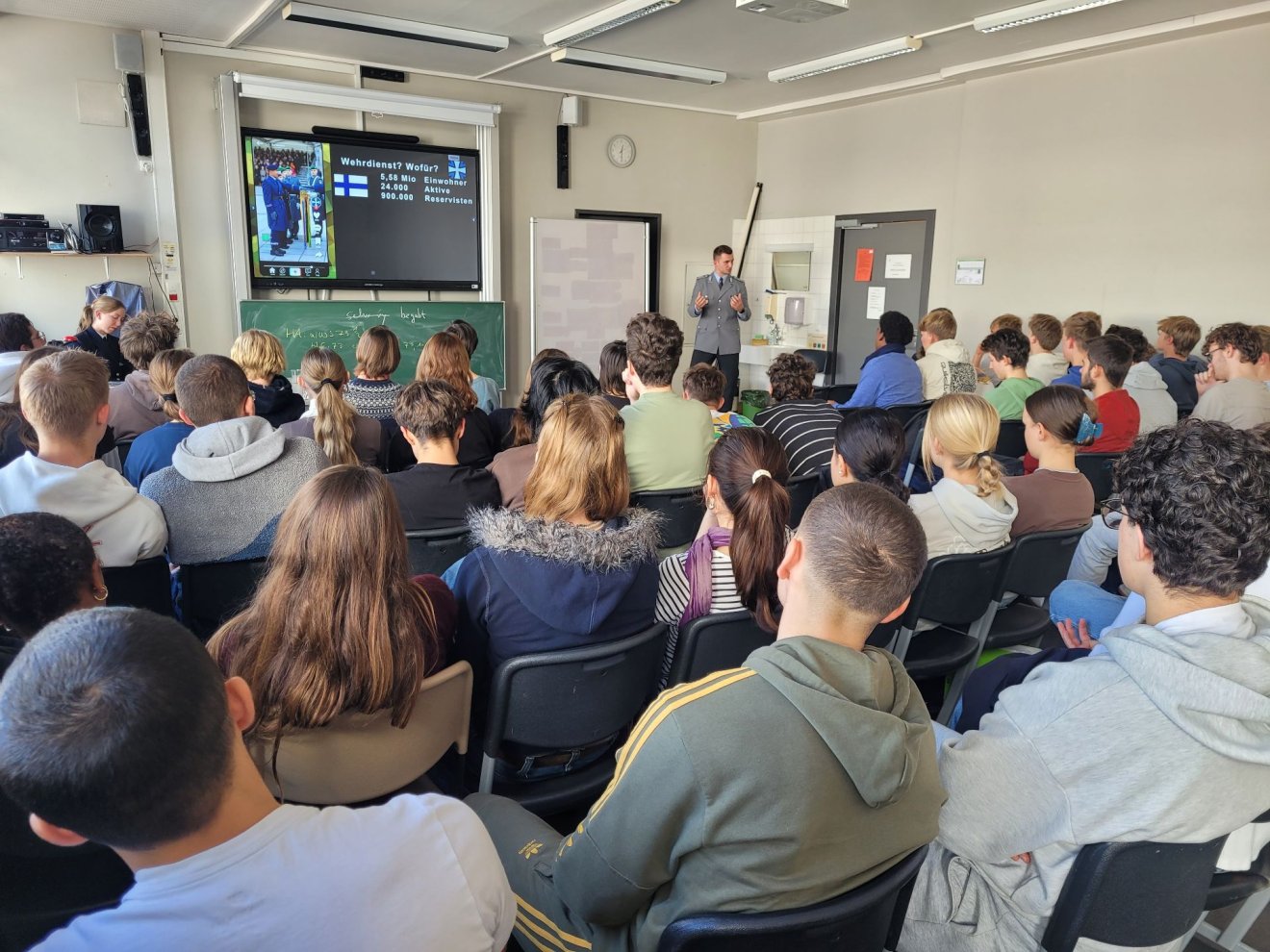 Dass am Ende auch noch zahlreiche Fragen gestellt wurden, zeigte, dass den Schülerinnen und Schüler die Bedeutung des Themas durchaus klar ist, und dass sie Hauptmann Lücke als kompetenten und nahbaren Ansprechpartner empfanden. Vielen Dank!