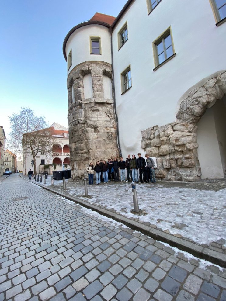Vor Ort konnten sie nach einer kurzen Stärkung die Überreste der alten Stadtmauern in den Katakomben des Parkhauses am Dachauplatz begutachten. Fasziniert von der technischen Meisterleistung der Römer begaben sie sich anschließend ins historische Museum, um noch mehr von dem Hauch der Antike in sich aufzunehmen. Die Ausstellung und damit verbundene Führung überzeugte durch einen hohen Informationsgehalt. Architektonische und ästhetische Meisterleistungen dicht an dicht mit den bemerkenswert einfachen und daher innovativen Techniken der Römer! Im Anschluss wurde noch die sogenannte Porta praetoria und die Steinerne Brücke, der Übergang zu den damalig unzivilisierten Barbaren (heute eher die feinere Neustadt), begutachtet. Um das Bildungsprogramm abzurunden, wurde auf dem Rückweg noch ein Abstecher zum Dom unternommen.
