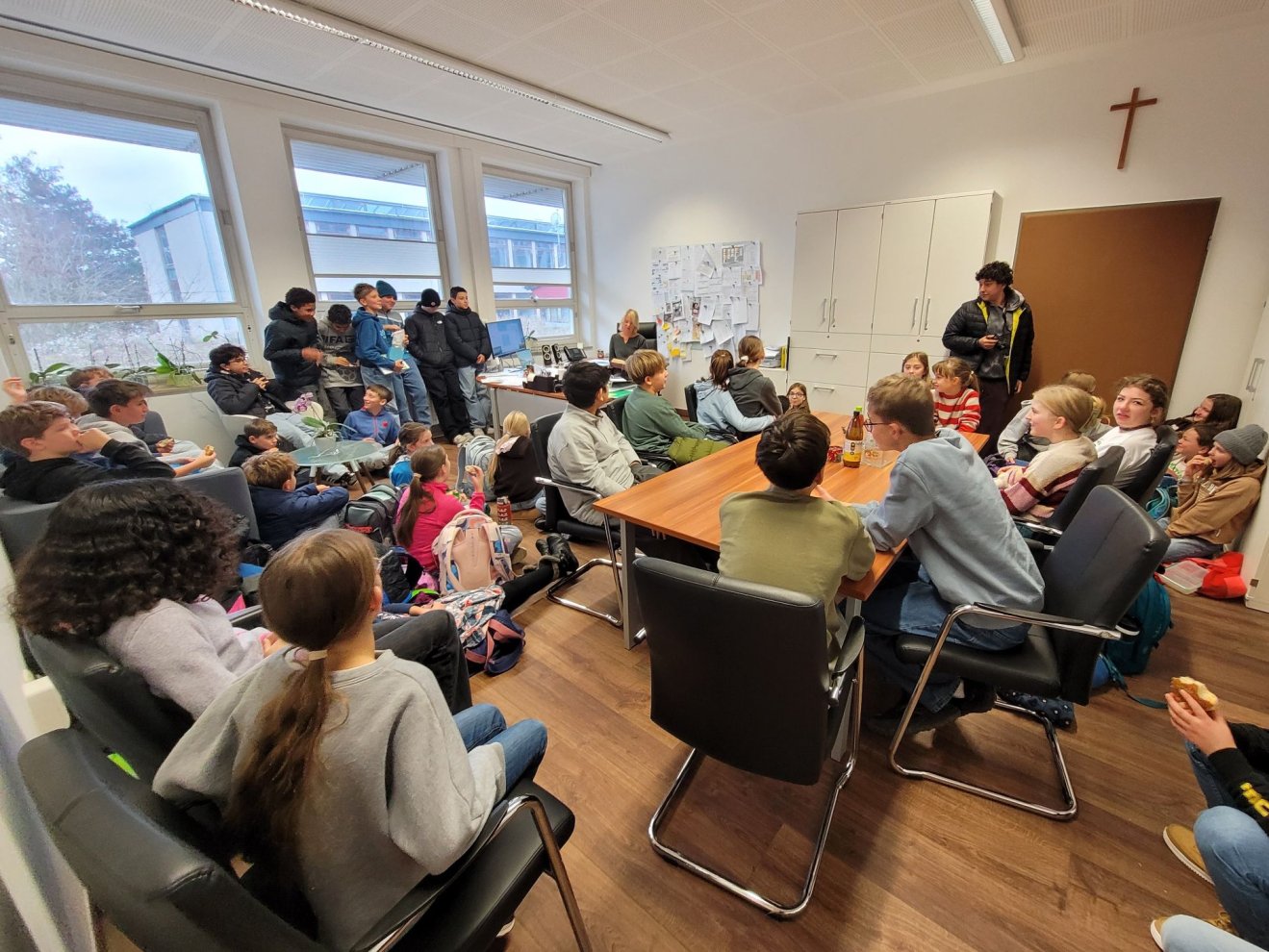 Im Übrigen zeigte sich aber am JoHo, dass ein bisschen Prominenz der Vorlesenden im Kampf um die Gunst der Zuhörerschaft nicht schadet: Am mit Abstand besten besucht war nämlich das Büro der Schulleiterin, und der Verdacht liegt nahe, dass die vielen Schülerinnen und Schüler dort nicht nur die Geschichte genossen haben, sondern auch die Gelegenheit, sich dort einmal ganz entspannt umschauen zu können. 😉
