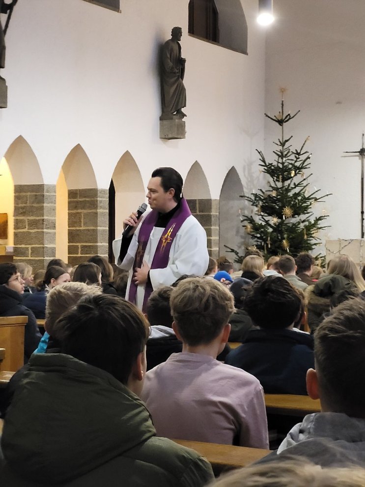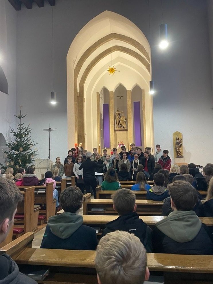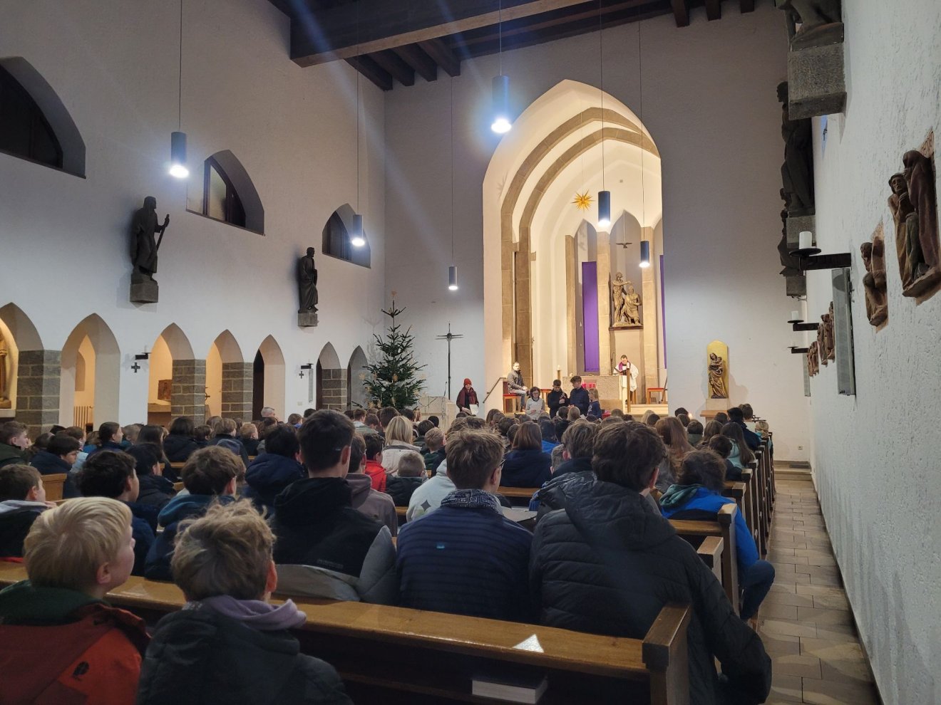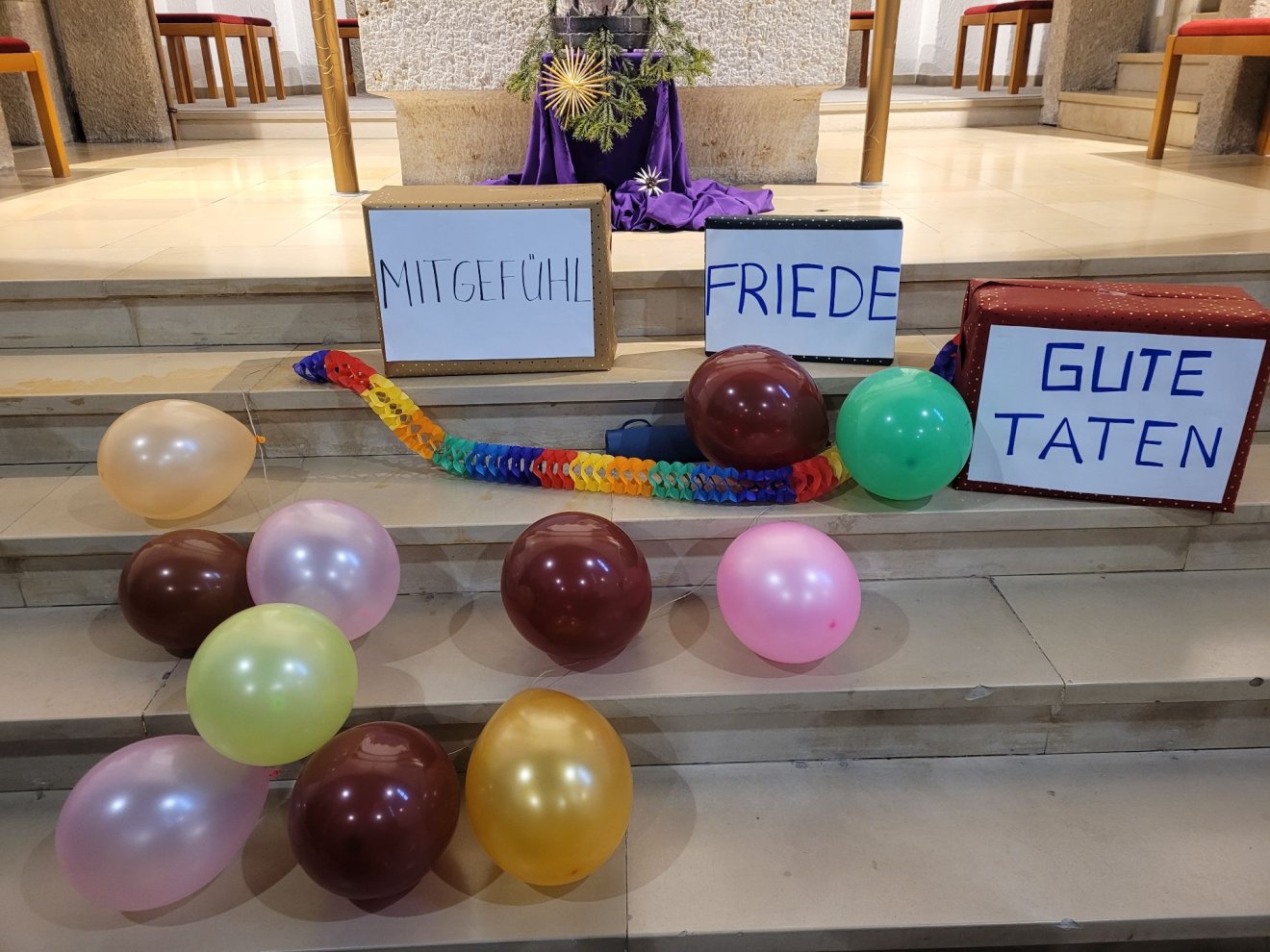 Eine Geburtstagsparty für Jesus wurde am letzten Schultag in der Pallottinerkirche gefeiert - mit "Happy Birthday", Luftballons und Geschenken. Um letztere ging es dann auch in den Texten im Weihnachtsgottesdienst: Worüber würde sich Jesus freuen? Eine neue Playstation ... oder steht er auf Gold, Weihrauch und Myrrhe?