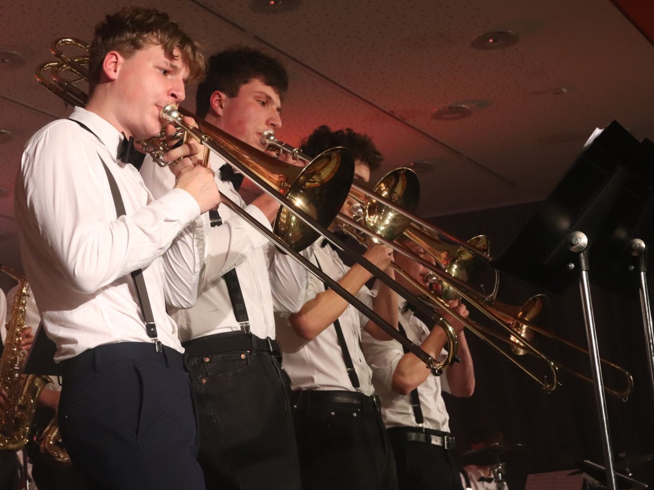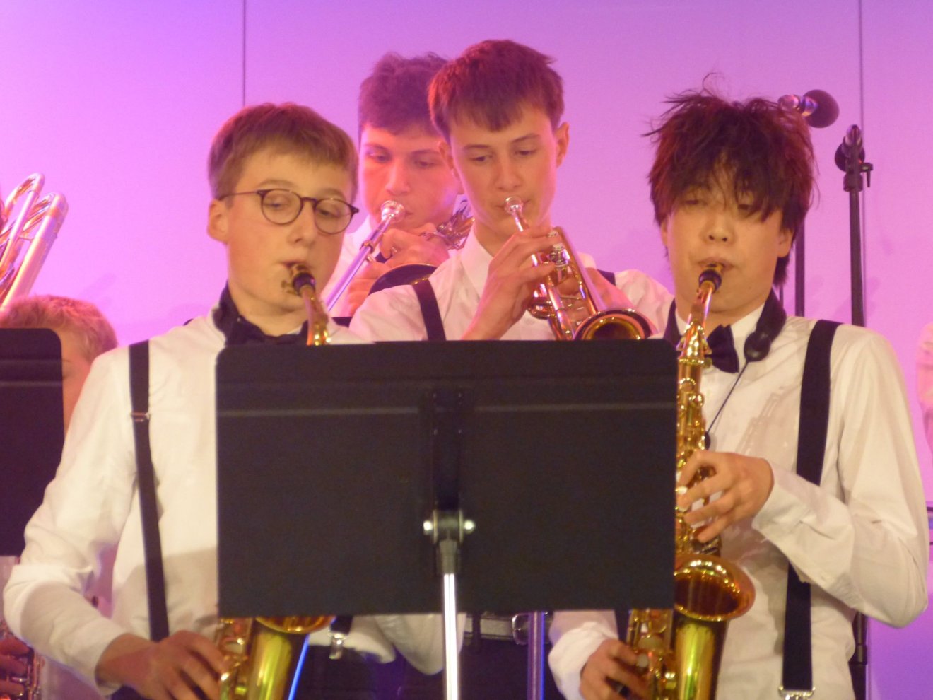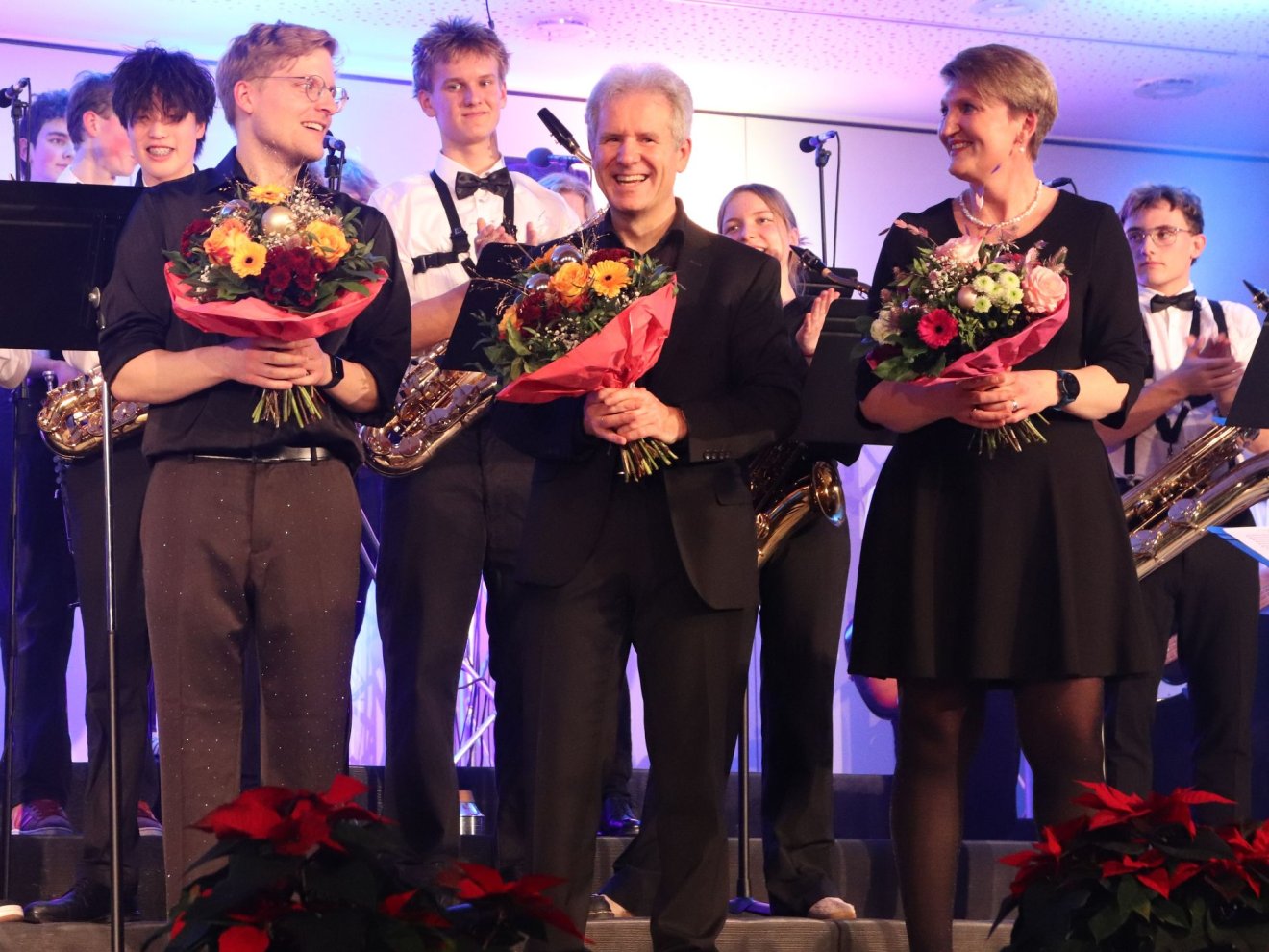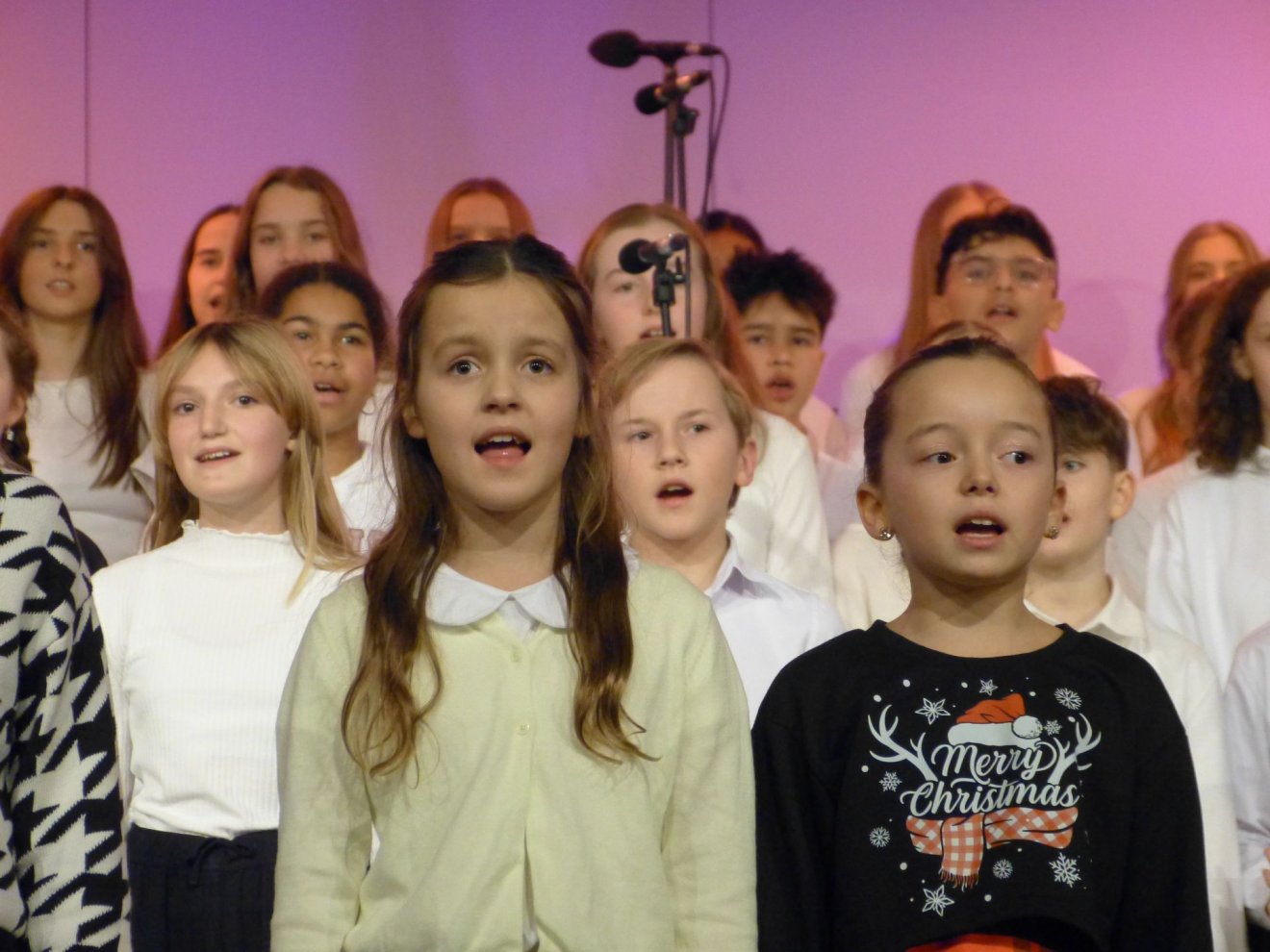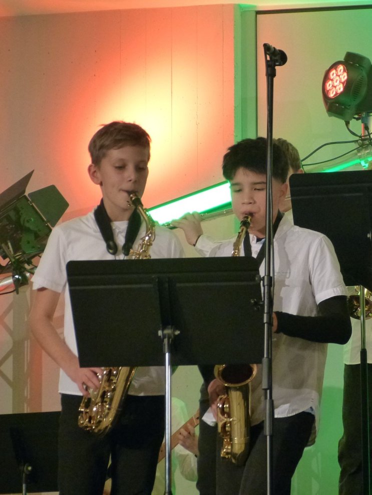 Über 200 Mitwirkende präsentierten gemeinsam ein beeindruckendes Weihnachtskonzert. Das erste Highlight bildete der Unterstufenchor, der in diesem Jahr einen neuen Rekord aufstellte: Stolze 80 Kinder sangen mit Begeisterung, sodass die Bühne eigens mit zusätzlichen Teilen erweitert werden musste – die Schulleitung hat die Rechnung dafür übrigens mit einem Lächeln signiert. Das Instrumentalensemble eröffnete den Abend stimmungsvoll mit "Panis angelicus" und stimmte das Publikum auf einen besinnlichen Abend ein. Die Junior Big Band begeisterte mit "We're Back" aus Moana und "Ain't No Mountain High Enough", während die große Big Band mit "Virtual Insanity" und "Trombones Under the Tree" überzeugte. Besonders bemerkenswert: Die Big Band ist in diesem Jahr stark angewachsen – mit vielen Posaunen und mehr Trompeten sorgte sie für einen volleren Sound, der einen mitreißenden Abschluss bildete und das Publikum zum Mitwippen einlud. Julia Gebhardt verzauberte als Solistin mit Schostakowitschs "Romanze in D-Dur" an der Violine. Der Unterstufenchor präsentierte unter anderem "Fix You" von Coldplay, der gemischte Chor überzeugte mit "The Rose" und einem beeindruckenden A-cappella-Stück. Beeindruckend, mit welcher Selbstsicherheit und Spielfreude alle Beteiligten vor so vielen Menschen ihre Stimmen erklingen ließen! Hervorheben möchte ich auch das Engagement einzelner Lehrkräfte, die die Ensembles aktiv am Cello, an der Geige, an der Posaune und am Klavier unterstützten. Das gemeinsame Abschlusslied "Adeste Fideles" zeigte eindrucksvoll, welche Kraft in der musikalischen Gemeinschaft liegt. Unser herzlicher Dank gilt allen Mitwirkenden und Besucherinnen und Besuchern, die diesen Abend zu etwas Besonderem gemacht haben. Übrigens, liebe Eltern: Falls Sie noch ein Weihnachtsgeschenk suchen – unsere Ensembles können immer neue Musikanten gebrauchen! Wie wäre es mit einer Gitarre, einem Saxophon oder vielleicht einer Triangel unterm Weihnachtsbaum? 😉Frohe Weihnachten und auf ein musikalisches neues Jahr!